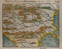 Map of Transilvania, a colored cote of arms and a beautyful colored small engraving. The map size is 15,0 x 19,0 cm.